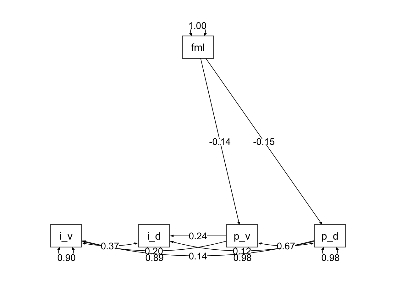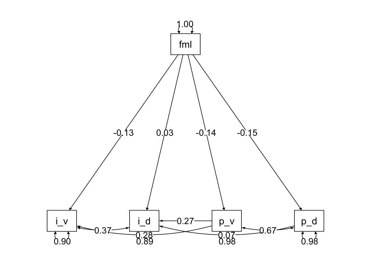 semPlot::semPaths(model, what = what, edge.label.cex = 1, edge.color = "black", layout = layout, rotation = rotation, weighted = FALSE, asize = 2, label.cex = 1, node.width = 1.5)