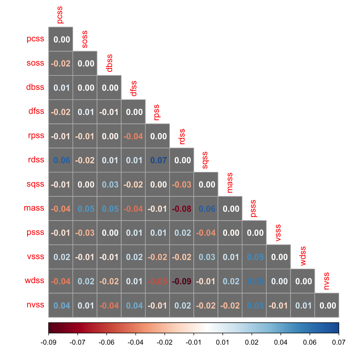 getCov(names = c("wdss", "vsss", "sqss", "soss", "rpss", "rdss", "psss", "pcss", "nvss", "mass", "dfss", "dbss"))DAS-II 모형의 CFA: