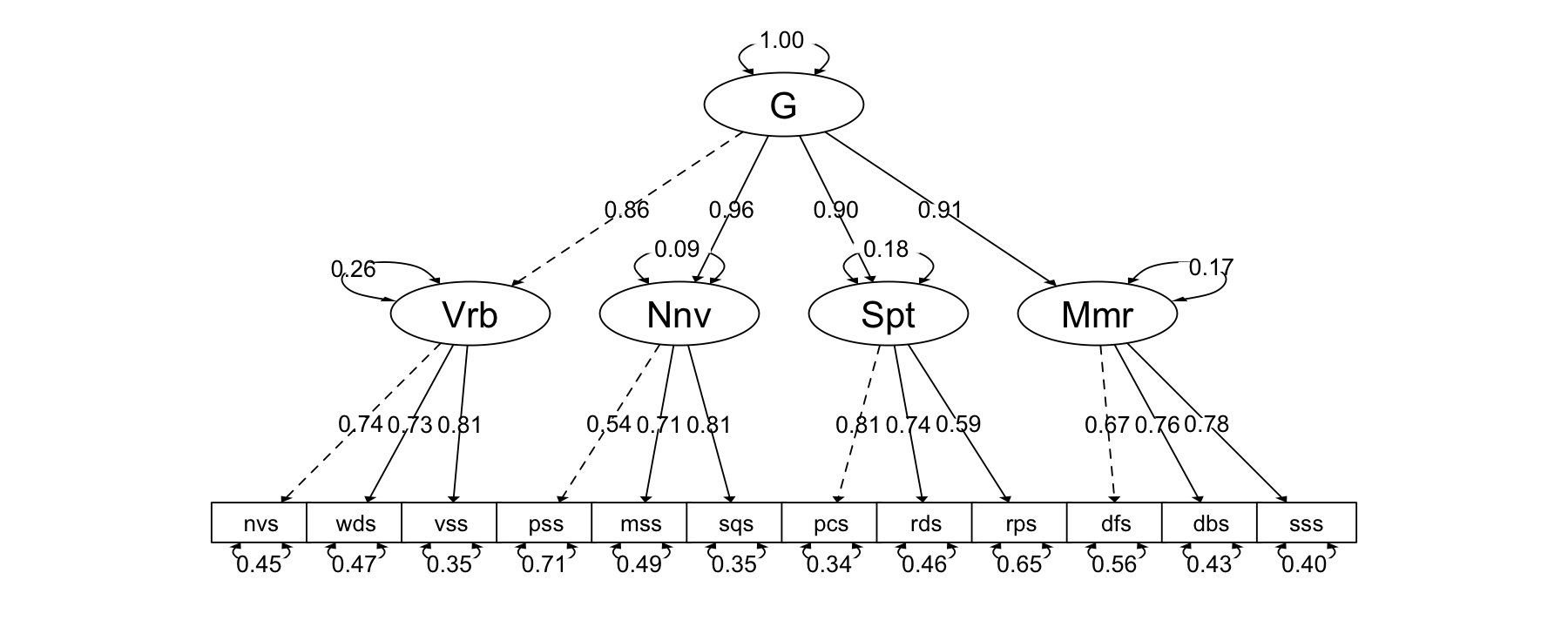 G =~ Verbal + Nonverbal + Spatial + dfss