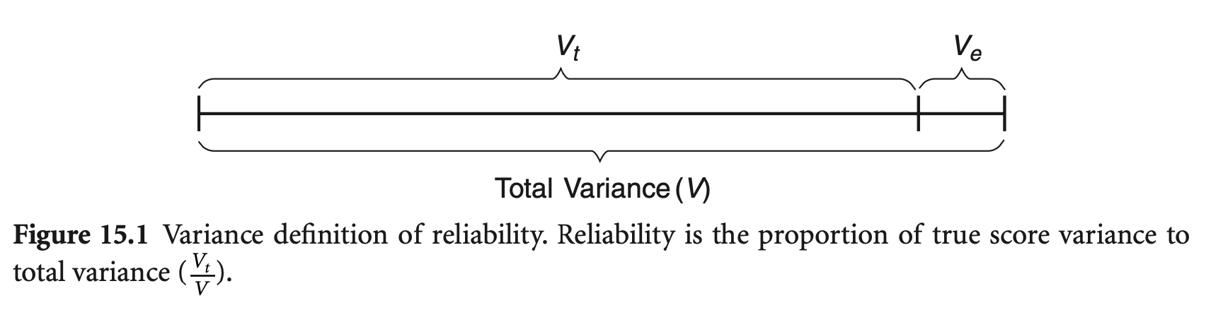 Reliability (신뢰도): \(\displaystyle \rho = \frac{V_{\text{True}}}{V_{\text{Observed}}} = \frac{V_{\text{True}}}{V_{\text{True}} + V_{\text{Error}}}\)