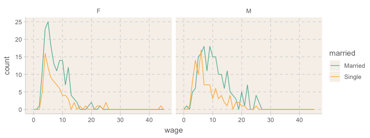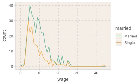ggplot(aes(x = wage, color = married)) +