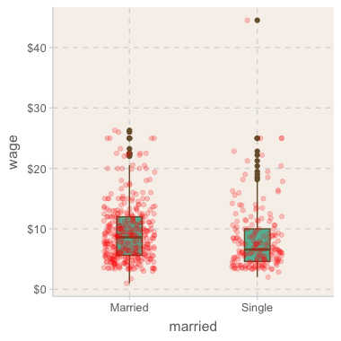 ggplot(aes(x = married, y = wage)) +