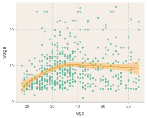 ggplot(aes(x = age, y = wage)) +
