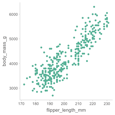 mapping = aes(x = flipper_length_mm, y = body_mass_g)